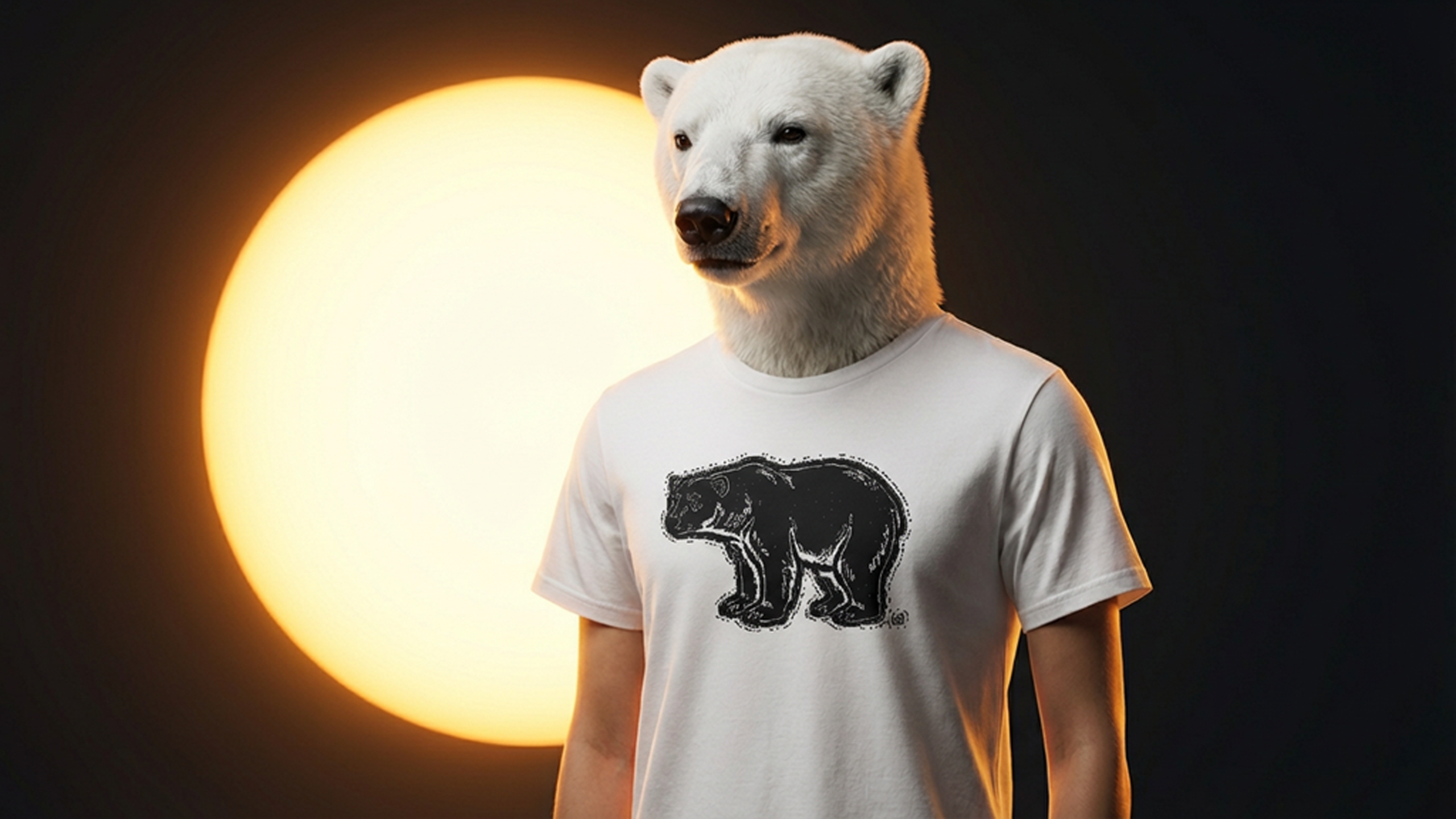 Aquí empieza la colección: retratos humanos con cara de animal, un sol detrás como llamada, y una pieza que funciona como uniforme para volver a lo esencial.